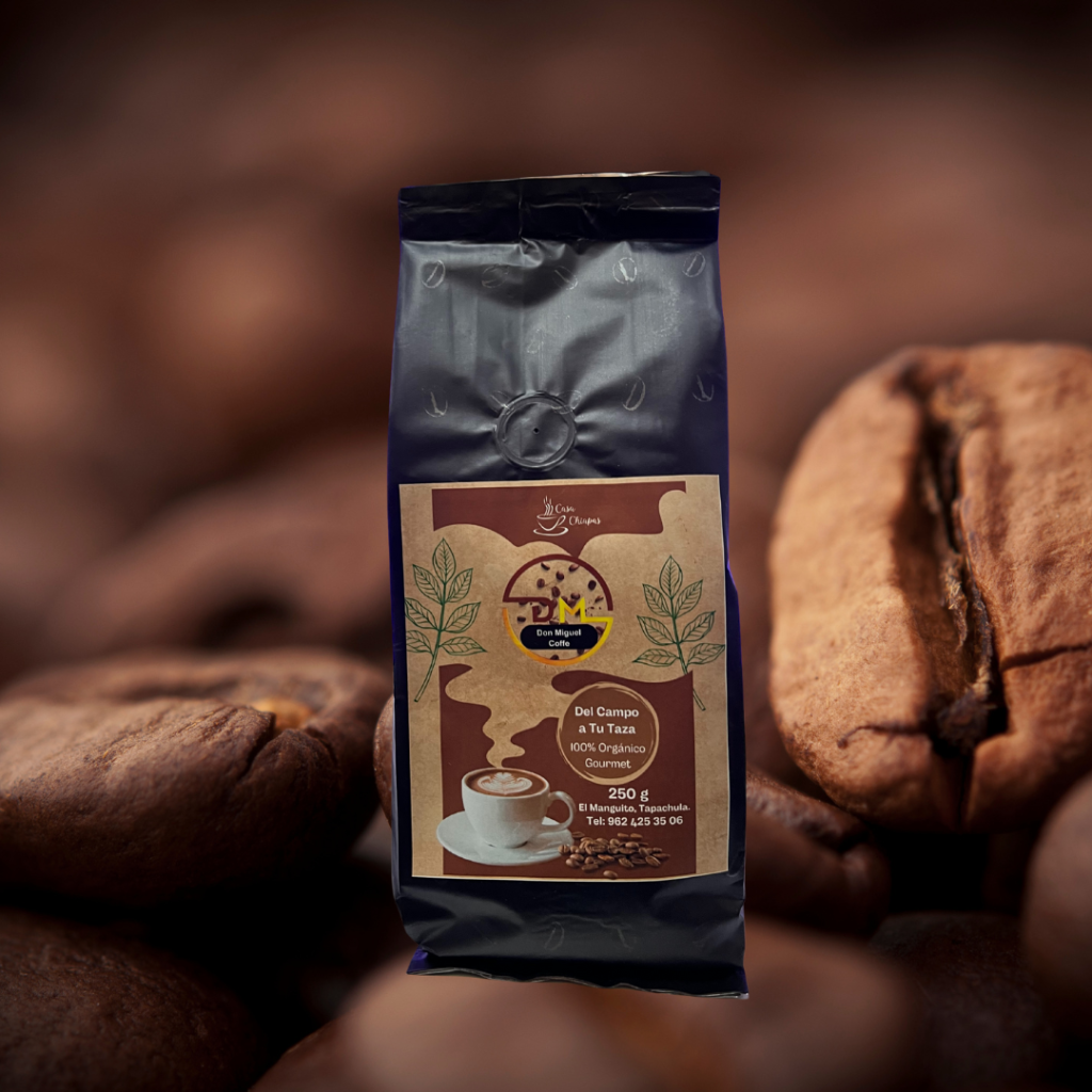 Productos orgánicos cultivados en las mejores tierras de Chiapas. Café Don Miguel Coffee proviene de las faldas del Volcán Tacaná, a 1600 metros de altitud, mientras que Café Real Chiapaneco se cultiva en el ejido El Triunfo municipio de Escuintla.